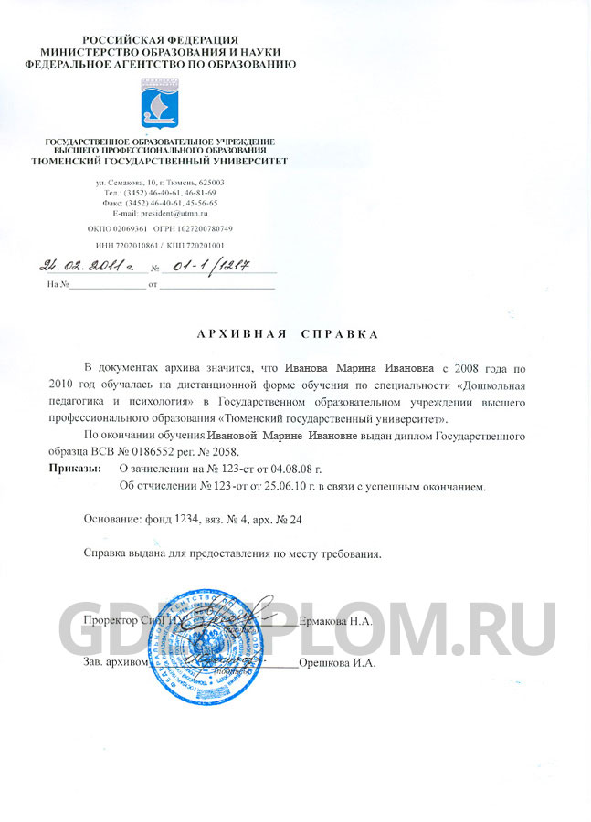 Архивная справка любого ВУЗа